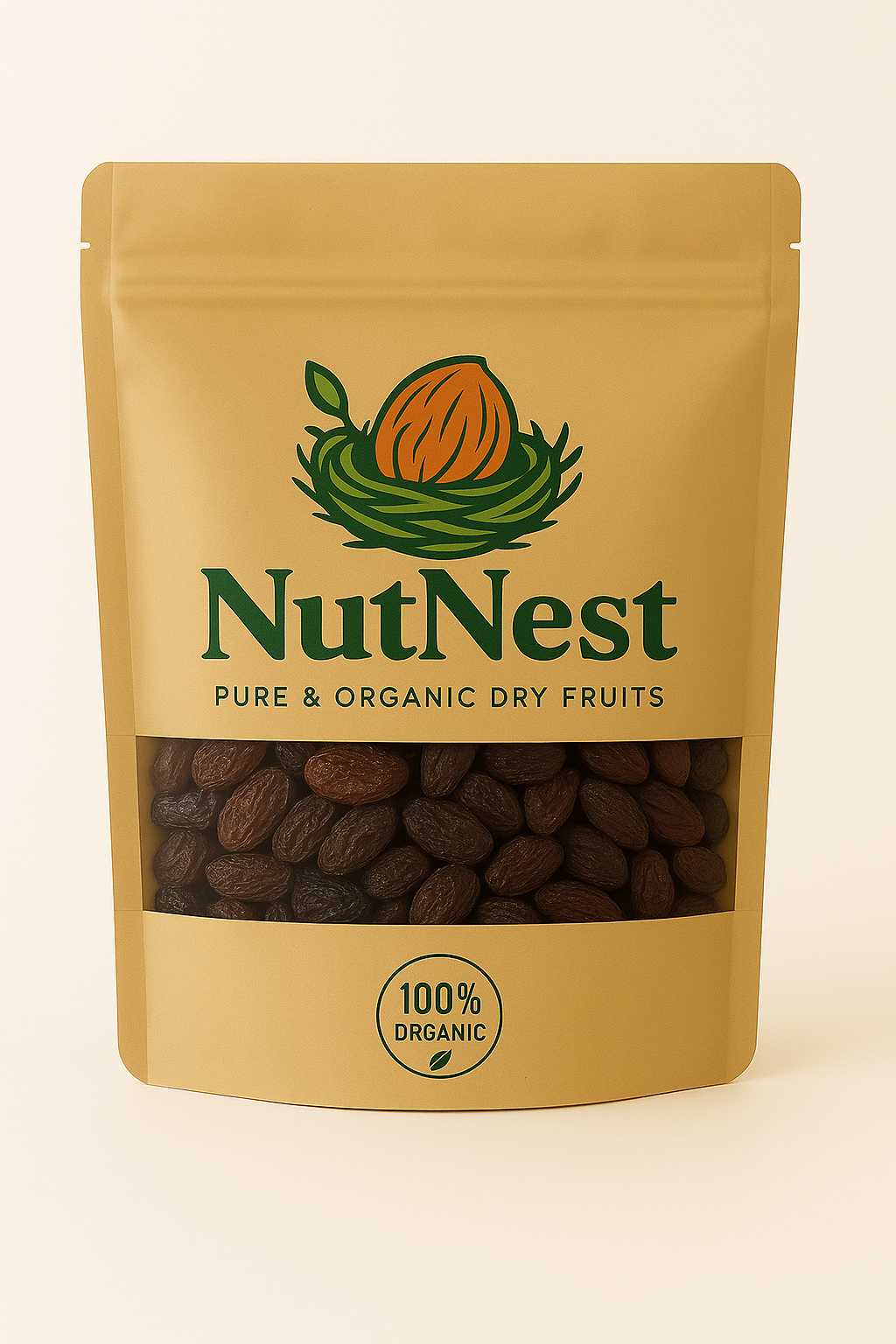 Nutnest Afghani Raisins (افغانی کشمش ) are naturally sun-dried and handpicked from Afghanistan’s fertile vineyards. Soft, chewy, and naturally sweet, these raisins are rich in iron, antioxidants, and fiber. A perfect healthy snack, they boost energy, support digestion, and add natural sweetness to your meals and desserts. A wholesome treat straight from nature.